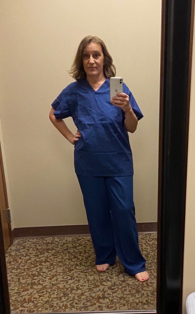 We take our spine for granted! Stop doing that!MRI scrubs. It is extremely rare to be given scrubs that fit!My work buddy. I’ve taken over Evelyn’s bedroom as a workspace. Better light!