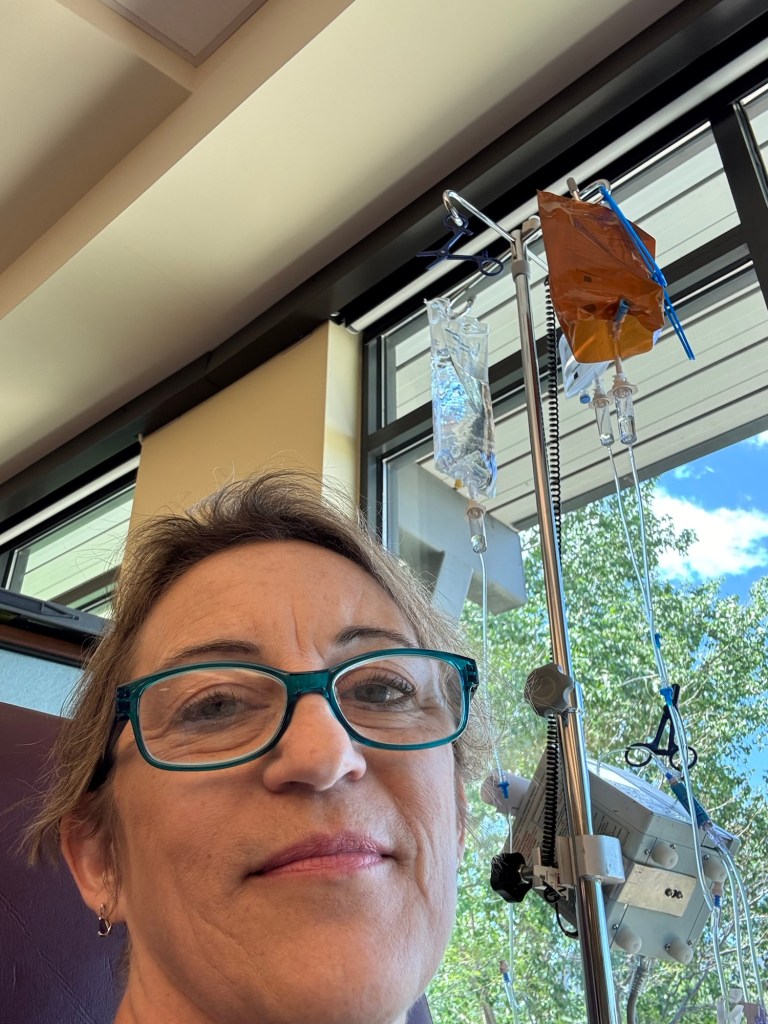 Today was “treatment day.” That means a lab draw, office visit and then infusion of medications.